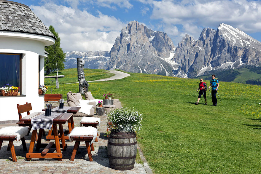 돌로미테 지역의 ‘알페 디 시우시’의 호텔 풍경은 말로 형언하기 힘들 정도로 아름답다. 일행 중 한 분은 “내가 여기를 오려고 지금껏 여행을 다닌 것 같다”고 말씀하셨다. 손님을 감격시킨 이 호텔은 3성급이다. 승합차 한 대를 두 번에 나눠 타고 십 여분을 가서야 호텔에 당도하는 불편함도 있다.
