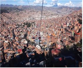 태양의 섬이 있었던 코파카바나에서 볼리비아 수도 라파즈로 향했다. 해발 3700m에 위치한 이 도시는 세계에서 가장 높은 곳에 자리잡은 수도다. 하늘과 가까운 이 공중도시는 그 높이도 모자랐는지 공중에 케이블카를 운행하고 있었다. 끔찍한 교통 체증과 산동네 사람들의 교통수단으로 2014년에 개통되었다는 이 신통한 케이블카를 외곽 도시 엘 알토에서 라파즈로 진입할 때 타 보았다. 마치 관광 케이블카를 타는 기분처럼 신나고 재미있었다. 산악지대의 밀집형 도시가 한 눈에 내려다보이고, 가파른 산에 빼곡히 들어찬 붉은 벽돌의 낡은 집들과 고층빌딩과 천막들이 파노라마처럼 펼쳐져 보였다. 정말이지 도시가 한 눈에 조망되었다. ‘라파즈’가 ‘평화’를 의미하지만, 결코 평화롭게 보이는 풍경은 아니었다. 숨이 막힐 듯 꽉 찬 건물과 매연과 많은 인파들로 정신이 없었다. ‘포위된 도시’같은 느낌이었다. 더욱이 남미에서 가장 치안이 좋지 않다는 선입견까지 덧붙여 한 나라의 이미지가 순간적으로 포착되는 것 같았다.