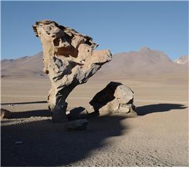 알티플라노는 스페인 말로 ‘고원’을 뜻한다. 지리적으로는 광범위한 범위에 이르지만, 여행에서 알티플라노는 볼리비아에서 칠레로 넘어가는 안데스 산맥의 고원 평야지대를 말한다. 평균 고도 3600m 위를 달리는 여정은 울퉁불퉁한 협곡들과 엄청난 크기의 선인장과 거친 목초지에 풀을 뜯는 야마떼, 오묘한 지형과 안데스의 설봉과 화산 그리고 아름다운 호수들이 쉼 없이 펼쳐졌다. 우리가 달리는 차외에는 인적이 없는 허허로운 그 길은 너무나 아득하고 황량하여 태초의 길처럼 보였다. 지구 깊숙한 비경 속으로 빠져드는 기분으로 하루종일 달려도 끝이 어딘지 영원히 종착지가 없을 것 같은 무인지경의 공간이었다. 이 대자연의 파노라마를 일박이일 동안이나마 향유할 수 있었던 것은 그래도 남미를 제대로 본 것 같은 자부심을 안겨주었다.
