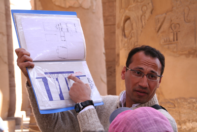 | 이집트 최고의 가이드는 누가 뭐라 해도 에즈딘씨다. 우리나라 언론매체에도 자주 등장했던 에즈딘씨는 해박한 지식과 정감 넘치는 안내로 인해 한국 여행자들에게도 큰 인기를 끌고 있다. 이 에즈딘씨와 테마세이투어는 4년 전부터 각별한 인연을 맺고 있다. 이집트 여행이 그리스/터키와 묶여 카이로만 지나치듯 보고 빠지던 시절, 테마세이투어가 최초로 백사막과 흑사막 지역 프로그램을 시작하였고, 그 때 에즈딘씨가 가이드로 나왔었다. 물론 지금은 이 상품이 보편화되었지만 당시로서는 사막에서 하룻밤을 묵는 이 프로그램이 획기적이었나 보다. 에즈딘씨는 자기가 안내하고 싶었던 바로 그 프로그램이라며 정말 최선을 다해 안내를 해주었다. 그리곤 앞으로 테마세이투어 손님이 오면 만사를 제쳐놓고 본인이 안내하겠노라고 자청해서 약속을 했다. 이후 해마다 겨울이면 1-2개 팀이 이 프로그램으로 이집트를 방문했고 여지없이 가이드는 에즈딘씨가 맡았다. 하지만 올해는 사정이 조금 복잡해졌다. 올 겨울에는 6개팀이 이집트를 방문하면서 겨울 내내 테마세이팀이 끊이지 않게 된 것이다. 12월 18일부터 1월 31일까지… 에즈딘씨는 우리의 연락을 받은 후 이미 예약되었던 타 여행사의 가이드 일정을 모두 취소했다. 겨울 내내 우리와 함께 하기로 한 것이다. 사실 이런 결정은 에즈딘씨에게는 쉽지 않은 것이다. 테마세이투어에는 쇼핑점 방문이 없을 뿐만 아니라 일반적으로 옵션투어로 진행되는 빛과 소리의 쇼나 마차 투어 등등도 모두 기본으로 포함되어 있어 부수입이 전혀 없기 때문이다. 겨울 내내 테마세이 팀과 함께 한 에즈딘씨는 쇼핑이나 옵션 등의 부담 없이 자기 나라 문화만 맘껏 소개할 수 있어서 기쁘다는 말과 함께 능숙한 한국어로 말했다. '사장님과 사나이 대 사나이로 약속했거든요.' 조그마한 이익 앞에 자주 흔들리는 여행업계에서 에즈딘씨는 정말 믿음직한 테마세이투어의 동반자란 느낌이 들었다.