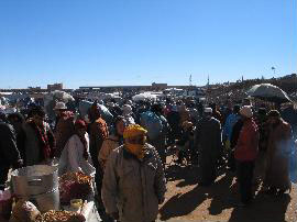 잠시 쉬기 위해 엘 켈라 엠고우나라는 마을의 휴게소에 들렀다. 아주 작은 마을이지만 세계적으로 유명한 마을이었다. 질 좋은 장미향수 원액이 생산되는 곳이었다. 식민지 시절 프랑스인들에 의해 장미가 재배되기 시작해 지금까지 그 전통이 이어지고 있었다. 5월이 되면 이 마을은 핑크빛 세상이 된단다. 전체 생산량은 모르겠지만 1ℓ의 향수를 얻기 위해 10ton의 꽃잎이 필요하다니 대단한 장미산지임에 틀림없다. 또 이곳 농부들의 자부심도 강해 프랑스가 원액을 수입해 알코올을 첨가해 판다는 사실을 알고 수출 중단까지 강행했단다. 그러나 이 계절에는 아름다운 장미 산지라는 것이 전혀 실감나지 않는다. 휴게소에서 파는 장미 원액 용기도 소아과에서 주는 플라스틱 약병보다 조잡했다. 장미 마을을 지나니 제법 큰 마을들이 이어졌다. 절대 인간 생존이 녹녹치 않은 자연 환경이지만 댐이 만들어지면서 큰 마을들이 형성되었다. 그 옛날에는 우기 때나 물을 볼 수 있는 와디(건천)였겠지만 이제는 항시 물이 흐르는 강으로 변해 마을이 열촌 형태로 줄지어 서 있다. 가장 긴 마을은 30㎞정도나 된단다. 물길을 따라 경작지와 팜농장, 공장들이 들어서면서 겨우 오아시스 정도에 의지하던 사람들이 안정적인 생활이 확보되고 경제적 여유도 갖게 된 것이다. 또 많은 노동력이 필요하니 현대식 도시가 자연 발생적으로 생긴 것이다. 몇 년 전 열사의 땅, 타클라마칸 사막을 여행하면서 느꼈지만 인간은 물을 따라 움직이는 바이러스 같은 존재다. 어떤 기후적 악조건 속에서도 물만 있으면 생명의 뿌리를 내린다. 그리고 정겨운 고향땅으로 만들어버린다. 우리는 중간, 중간 내려 물길을 따라 멋지게 자란 대추야자 숲과 붉은 진흙집들의 완벽한 조화로움에 감탄하며 모로코를 즐겼다. 한번은 우리가 마을을 구경하고 있는데 일본팀이 왔다. 대부분 여자들이었다. 차에 오르니 모하메드가 자기는 일본여성과 한국여성을 구별할 수 있단다. 예쁘면 한국인이 틀림없단다. 할머니들을 앉혀놓고 그런 말을 하니 웃어야할지, 말아야할지.... 예쁜지 안 예쁜지는 알 수 없지만 한국여성들이 옷은 입을 줄 알지.... 유행과 개성에 상관없는 무채색 옷의 집단여성! 틀림없는 일본 관광단이다. 티네기르는 고만고만한 마을 중에 제법 도시의 냄새를 풍겼다. 그리고 유난히 많은 사람들이 거리에 나와 있었다. 월요일마다 장이 서는데 오늘이 딱 장날이었다. 마사장님이 이 기회를 놓칠 리가 없다. 모하메드는 갖은 이유를 대고 난색을 표했지만 절대 사진은 찍지 않기로 약속하고 시장구경에 나섰다. 파키스탄 페샤와르에서도 이런 장 구경을 했지만 현지인과 몸을 부딪혀가며 몰려다니는 것은 처음이라 아무래도 몸을 사리게 되었다. 그러나 그것도 잠시, 아무리 기질이 센 사람 들이라고 해도 순박한 시골사람들이다. 우리를 신기해하며 하얀 이를 드러내고 활짝 웃는 얼굴들은 금방 나를 무장해제 시켰다. 사진 찍지말라구? 서로 즐기며 마구 찍었다. 이들도 노르스름한 외국인은 처음 보았는지 우리가 시장 최대의 볼거리가 되었다. 상설시장이 아니니 모두 좌판을 벌여 놓았다. 물건 자체는 신기한 것들이 별로 없지만 싸구려 중국산 물건들에 혼을 빼앗기고 있는 그들의 모습이 훨씬 재미있다.원래 장터에서 사람 구경이 최고 아니던가? 특별한 오락거리가 없는 이 오지의 생활에서 장보다 더 신나고 재미있는 축제가 있을까? 구경만으로 만족해야 하는 아쉬움... 벼르고 별러 원하는 것을 얻기 위해 흥정에 열중인 저 몸싸움... 오랜만에 서로 만나 서로의 안부를 물으며 나누는 남자들끼리의 진한 스킨 쉽... 시장판을 휘젓고 다니는 10대들의 몸장난과 웃음소리.. 차도르로 온 몸을 가리고 내가 궁금해 숨은 눈을 치껴뜨고 나를 쫓는 여자들.... 수다 중에 나를 무심코 보고 얼음이 되어 버린 남자들..... 10대 몇 명은 계속 나를 따라 다니며 호기심을 거둘 줄 모른다. 우리나라에서는 통하지 않는 나의 미모가 아프리카 권에서는 먹히나? ㅎㅎㅎ........ 완전히 다른 인종이 만나 서로를 탐색하며 즐겼다. 원초적 즐거움이 내 영혼을 자유롭게 한다. 잠시나마 우리가 이 장터의 행복요소였다고 생각하니 어깨가 으쓱해진다. 장터 밖에는 학생들이 모두 나와 커다란 플랜카드를 들고 가두 행진을 하고 있다. 얼마 전 이스라엘이 팔레스타인을 학살한 것에 대한 분노의 표출이다. 소란한 세상과 멀찍이 떨어져 있는 이곳조차 이념의 고리에서는 자유롭지 못했다. 우리도 창을 열고 그들의 행동에 박수를 보내자 어린 학생들이 좋아 죽는다. 토드라 협곡으로 가는 고갯길에서 티네기르 시내를 내려다 본 풍광은 숨을 멎게 했다. 일행 모두 일제히 일어서 탄성을 질러대고 찬사를 보내니 모하메드는 자랑스러워 코를 벌룸거리면서 행복해 한다. 토드라 강을 끼고 조성된 팜나무 숲은 맹세코 내가 본 숲 중에 최고였다. 한 그루, 한 그루의 힘찬 생명력은 거대한 거인의 모습이었다. 아틀라스처럼 이들이 있기에 지구의 하늘이 반듯하게 떠 있다고 여겨진다. ![]() ![]() 미국 유타주 같은 황량한 사막 속에 신의 보물이 숨겨져 있는 것 같은 신비로