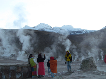 | 티에라 아타카마 호텔에서 2박을 하고 오늘의 관광을 마치고는 칠레의 수도 산티아고로 가는 비행기를 타야 한다. 오후 6시 반에 떠나는 비행기라 시간의 여유는 넉넉하였다. 이른 아침부터 움직인 것은 노천에 있는 간헐천으로 가 일출을 보자는 뜻이었다. 시간이 일러서 인지 쌀쌀했다. 버스에 오르자 안내양? 이 담요를 하나 씩 나누어 준다. 호텔에서 빌려온 건지 아님 현지 여행사 측에서 준비 한 것인지는 알 수 없으나 암튼 무릎을 덮으니 따뜻하였다. 아, 여기서...그 안내양에 대해 설명을 해야 겠다. 우리가 이곳 산페드로에 도착을 하고나서 부터다. 몸집이 거대한 남자, 현지가이드가 칠레 국경까지 마중을 나왔었고 그 날은 밤늦게 티에라 아타카마 호텔에 투숙을 하였었다. 그리고 다음 날 아침 소금 사막으로 가는 첫 출정?부터 버스에 그 남자 가이드 외에 젊은 처자가 한 명 더 탔다. 뭐 이렇다 저렇다, 하는 설명도 없이. 그녀가 처음 한 일이 버스를 탄 우리에게 사탕을 나누어 주는 일이었고 그 다음에 작은 디카로 우리들의 사진을 찍는 거였다. 그 당시의 생각엔...아, 우리 일행을 이렇게 가이드 했다...하고 여행사 측에 보고용으로 찍는 줄 알았다. 그리고 그녀도 현지 여행사 직원일 줄 알았고. 헌데 그게 아니었다. 시간이 지나면서 알게 된 건 그녀는 남자 가이드가 데리고 온, 조카라 하지만 정말인지 아님 여자 친구인지. 암튼 그 두 남 녀 는 우리 일행을 목적지에 내려놓으면 그 때 부터 자기 둘의 사진이며 주변 경관부터 우리 일행의 사진까지 정신없이 찍어 댔다. 인솔자인신 사장님, 처음에 기막혀 하시더니 헐 수 없는 상황이란 것을 아신 뒤부터는...잘, 논다, 하는 표정으로 관망. 우리의 스케줄에 영향은 안 끼쳤으니 뭐라 할 수도 없었다. ![]() 그렇게 새벽부터 부지런히 간 간헐천. 뜨거운 김이 여기저기서 솟아 나오고 있었다. 이미 우리 일행 보다 더 먼저 도착한 유럽인들이 여러 군데로 흩어져 뜨거운 김을 쏘이며 즐기고 있다. 그 시각, 저 멀리 보이는 만년설의 산이 조금씩 설익은 토마토 같은 색이더니 점점 붉어져 잘 익은 홍시처럼 변해간다. 또 그쯤에 우리 버스의 운전기사, 가이드와 문제의 그녀가 아침상을 보아 놓았다. 버스에 싣고 온 작은 탁자에 식탁보를 씌우곤 쥬스와 샌드위치를 제공하는 거다. 샌드위치는 가이드가 일회용(절대로 일회용이 아닐 것이라는 사장님의 말씀)장갑을 끼고 직접 만들어 주는 거다. 식빵에 치즈 한쪽과 햄 을 넣은 것인데 나는 내키지 않아 먹어 보질 않았으니 그 맛을 설명 할 길이 없다. 암튼 그 일회용 장갑(우리나라에서 사용하는 것과 같은 것)은 그날 점심 역시 그렇게...식당이 아닌 길에서 먹게 되었는데 그 때도 사용하였다. 어찌 되었던 그렇게 아침을 먹게 되었는데 커다란 페트병에 물을 담아 뜨거운 온천물에 담가 놓았더니 무지 뜨거워 진거다. 그 물에 탄 코코아가 추워서 인지 그렇게나 맛있을 수가 없었다. 이럴 때 이런 곳에서 쌀쌀한 아침에 해장으로 컵라면을 먹었다면, 우와~~ 라면 회사 사람들 이런 곳에 와서 광고 찍으면 대박 날텐데...하는 생각이 났다. 추워하면서 돌아다니다가 찾아 낸 곳이 있었으니 그야 말로 온돌 방 이었다. 꽤 여러 명이 앉을 수 있는 제법 큰 평평한 돌이 있는데 그 아래에서 뜨거운 물이 끓고 있는 거다. 한 동안 앉아 있던 사람이 방을 빼 줘야 할 정도로 뜨거웠다. 그런 곳을 찾아내어 자리 잡고 앉은 일행들은 재미있어 죽겠다는 표정으로 으쌰 으쌰다. 해가 중천에 떠오르자 이번엔 노천온천으로 갔다. ![]() 수영복은 준비 해왔지만 여자들은 들어 갈 생각을 하지 않는다. 남자들 역시 단 한 분만이 용감하게 들어갔다. 더운 소금물에 수영을 하고 난 후의 절차가 귀찮아서 다들 구경만을 즐긴거다. 혼자 입수 하신 ‘이’ 선생님, 유럽 여자들 틈에서 기분 좋아 싱글 벙글. 와이프 되시는 ‘김’ 여사, “여보, 너무 뜨거운 데 조심 하슈, 어디 어디...데이면 안 되지” 그렇게 간헐천에서 이른 새벽을 보냈고 역시나 길에서 점심을 먹게 된 곳으로 옮긴 곳은 칼라마. 이곳엔 볼리비아 원주민 들이 스페인 지배를 받기 전 부터 다녔던 성당이 있는 마을이다. 마을은 입구부터 황량함 그 자체였다. 무너지다 만 흙담이며 양철 지붕을 얹은 , 금방 이라도 허물어져 버릴 것 같은 집들이며. 내 앞에 가던 사장님이 나를 기다리고 있다가 한 마디 툭 던진다. “저, 이곳 분위기가 마치 예멘 같지 않아요?”하고. 그랬다, 예멘의 쓸쓸하면서도 황량함이 비슷했다. 동네를 한 시간 쯤 돌아다니다가 큰 나무가 그늘이 되는 곳에 식탁이 다시 차려졌고 일회용이 아닌, 구멍 날 때 까지 사용할 것 같은 그 장갑 낀 손으로 만들어 주는 점심 샌드위치가 준비되었다. 이곳에서의 마지막 관광지는 얼마 전 사고가 났던, 세계적으로 유명한 추타카마타 광산이었는데 아쉽게도 일반인들의 접근이 금지 되었다. 탄광 사고 난 후 정부의 조치가 그렇게 되었다는 거였다. 그 근처까지 갔으나 버스안에서 탄광 구경을 하는 것으로 만족? 할 수 밖에 없었다. 그리고 우린 산티아고로 가기 위해 비행장으로 향했다. | ||