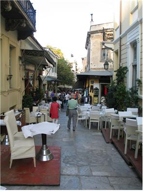 델포이를 뒤로 하고 겨울철 스키 족들로 북적인다는 작은 마을에서 점심을 먹고 아테네로 돌아왔다. 저녁 식사는 자유롭게 하기로 하고 플라카 거리에서 일행들과 헤어졌다. 낮도 밤도 아닌 어중간한 시간대여서인지 거리는 명성에 비해 너무 한산하다. 거리 전체가 레스토랑, 카페, 기념품 가게로 포위되어 있는 느낌이다. 그리스를 기념하기 위해 선희는 지중해 노을빛을 담은 반지, 나는 지중해의 물빛을 담은 반지를 하나씩 샀다. 흥미를 가질 만한 것이 없어 지루하다. 호텔로 돌아와 잠시 휴식을 취한 뒤 어둠이 완전히 내려앉은 골목을 배회하다 일행들과 함께 필로파포스 언덕을 올랐다.