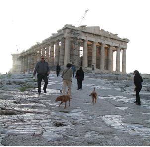 아크로폴리스의 진정한 주인은 여전히 떠돌이 개들이었다. 느릿느릿 걷고 조용히 눕는 개들은 우리에게 눈길조차 주지 않고 자신들의 방식으로 이 유적을 지키고 있다. 이곳을 방문한 마종기 시인도 나만큼 아테네 개들의 존재가 특별했던지 이런 시를 썼다. 개 짖는 소리에 선잠이 깬 새벽녘 서양 문명의 시작이 휴지되어 날리고 어두운 개가 조상의 뼈를 씹는다. 그 위에 옷 벗고 달아나는 서양 달 날개 잃은 아이들이 무대 뒤로 사라진다.