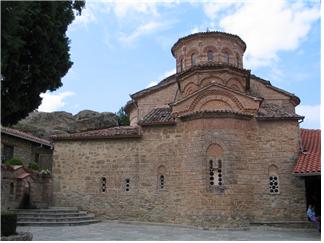 중앙 성당은 돔과 십자가형이 특징인 전형적인 비잔틴 양식으로 정갈한 붉은 벽돌이 인상적이다. 크레타 파 화가들이 그렸다는 내부의 벽화는 돔을 비롯해 벽 전체에 빈틈없이 그려져 있다. 메테오라 최전성기인 16C에 그려진 프레스코화는 전반적으로 어둡고 강열한 느낌이다. 끈질기게 이어져 온 이곳 역사를 대변하는 듯하다. 수도원의 식당 건물은 박물관으로 사용되고 있다. 성물 보관과 더불어 그리스가 외부의 침략과 지배의 힘든 시간을 보낼 때 그리스 정교회가 어떤 역할을 했는지 보여주는 자료들이 전시되어 있다. 정교회 수사들은 독립전쟁 때 앞장서 그리스 자유를 쟁취하기 위해 국민과 더불어 싸웠다. 정교회가 신을 등에 업고 무소불위의 권력을 휘둘렀고 수사들의 비도덕적 행위가 전혀 없었던 것은 아니지만 그럼에도 불구하고 국민의 신뢰와 함께 구심점 역할을 할 수 있었던 것은 이런 역사적 배경이 있었기 때문이다. 그리스의 오래된 교회에는 어김없이 국민과 함께한 고난의 역사 흔적이 남아 있다. 메테오라 제1의 수도원답게 관광객도 많아 고즈넉한 분위기는 즐길 수 없다.