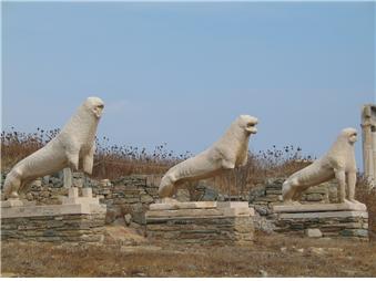 아폴론 거상이 서 있던 곳은 흔적만 남아있다. 드디어 이 섬 최고의 볼거리 사자상이 보인다. BC 7C 경, 낙소스 인들이 봉헌했다는 사자들은 일제히 레토가 출산했다는 연못 터를 바라보고 있다. 16 마리였다는 사자상은 이제 4마리만 남아있다. 박물관에 4~5마리가 있고... 마모가 심해 사자라기보다 날씬한 허리를 가진 치타에 가깝다. 딜로스를 홍보하는 사진에 꼭 등장하는 이 사자들이 석양을 바라보는 뒷모습은 이 섬의 운명을 한 컷으로 표현하는 것 같아 애잔한 허허로움이 묻어난다.