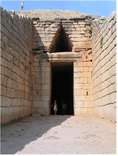 미케네는 북쪽의 아카이아인(인도-유럽어족)들이 내려와 터를 잡았다. 학자들은 대개 BC 1600~1100년 사이를 미케네 문명기로 보지만 신화에는 BC 14C 경, 아가멤논의 할아버지 페르세우스가 세웠다고 전한다. 미노아(크레타)문명이 해상 무역으로 그 세력을 키웠다면 이들은 전쟁과 침략으로 힘을 키웠다. 초기에는 크레타와 아주 우호적인 관계를 유지했지만 산토리니 폭발로 치명적 자연 재앙을 맞아 약해진 틈을 놓치지 않고 그곳으로 쳐들어가 크레타를 차지했다. 미케네는 크레타보다 활동 영역을 넓혀 소아시아 서부, 마케도니아 북부, 시칠리아, 이탈리아 해안지역을 식민지로 삼을 정도로 막강한 세력을 펼쳤다. 해상 무역의 범위도 넓어져 이탈리아 전역에서 미케네 도기 파편이 나온다. 또 이집트와의 교류도 활발했다. 그 증거가 원형 묘지에서 쏟아져 나온 금 유물이다. <아가멤논의 가면>처럼 죽은 자의 얼굴을 가리는 황금가면은 아무래도 이집트 문명의 영향으로 보여진다. 미케네문명 당시 금의 최대 공급지는 이집트였다. 호메로스의 일리아스로 우리에게 잘 알려진 트로이 전쟁 전설은 미케네 인들의 호전적 성향을 잘 나타내는 이야기다. 이런 극화된 전설을 포함하고 있어도 미케네 문명이 미노아 문명을 흡수해 위대한 그리스 문명으로 가는 다리 역할을 한 것만큼은 누구도 부정하기 힘들다.