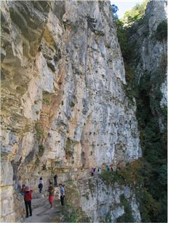수도원을 지나 조금 올라가니 드디어 옥시아 전망대다. 장엄한 깊은 계곡의 풍광이 한눈에 들어온다. 감탄사가 절로 튀어나온다. 1997년 기네스북에 올랐다는 계곡의 깊이는 가늠하기 힘들다. 그랜드 케년과 같이 바람, 물, 시간을 부모로 둔 형제지만 그 개성은 판이하다. 육신을 다 드러낸 그랜드 케년이 맹목적인 원초적 욕망을 품고 있다면 이곳은 소복소복 전설 같은 이야기를 품고 있다. 애잔하면서도 따뜻하지만 고단한 일상적 삶을 전한다. 벼랑 끝에 매달린 길은 너무 위험하다. 그래도 일행들은 아이들처럼 즐거워한다. 생각지도 않았던 스릴 넘치는 모험을 온몸으로 즐기고 있다. 이 완고하게 닫혀 있는 세상에도 예쁜 야생화는 다가올 겨울을 힘껏 밀어내면서 긴 햇살을 즐기고 있다. 수선화 닮은 맑은 노란 꽃은 이 가파른 절벽을 더욱 외롭게 한다.