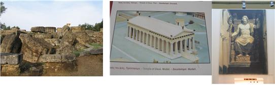 5C 경에 세워졌다는 초기 교회 건물을 제외하고는 기록상으로 남아있는 수많은 신전과 경기장, 분수들은 그 위치만 몇 개의 기둥과 돌무더기로 알 수 있다. 다 같은 폐허지만 호르메스가 세계 7대 불가사의로 칭찬한 제우스 신상이 있던 제우스 신전은 그 중 볼 만하다. 우람한 기둥의 잔해는 역시 제우스 ! 오랜 시간과 두 번의 큰 지진 속에서도 용케 살아남아 신의 제왕임을 말하는 위엄이 있다.