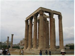 조금 이른 점심을 먹고 제우스 신전으로 갔다. 정확하게 신전 터라고 해야 하나? 2005년 아테네에 왔을 때 하드리아누스 기념문 너머 보이는 이 신전 터를 몇 번이고 지나다니면서도 들어가 볼 시간이 주어지지 않아 속상했었다. 뜨거운 햇볕이 쏟아지고 있는 신전은 단일 신에게 바쳐진 곳이라고는 믿기 힘들 정도로 넓었다. 그 신이 모든 신의 아버지라고 해도.... 신전은 폐허로 변해 10개 남짓한 기둥만 이곳을 지키고 있다. 그러나 그 기둥이 범상치 않다. 20m에 가까운 기둥은 빼어난 자태로 보는 이로 하여금 제우스의 힘을 느끼게 한다. 그러나 기둥은 코린트 양식으로 아주 세련된 로마 건축물임을 암시한다. 그리스의 제우스 신전이라기보다 로마의 주피터 신전이라 함이 어울린다. 실지로 신전 착공은 BC 6C 경, 아테네로부터 시작 되었지만 이런저런 이유로 AD 131년, 로마 황제 하드리아누스에 의해 끝이 났다. 황제는 이런 멋진 건축물을 세워 그리스 민족을 로마화했고 로마를 아테네화했다. 이제 이 폐허 속에서 제우스의 영광을 유추하기는 힘들지만 장구한 세월을 버틴 기념물은 영원할 듯싶다.