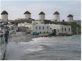 가게에서 파는 기념품들은 다양한 아이디어를 반영한 예쁜 것들이 많기는 하지만 가격대비 그 가치는 그다지... 기념으로 붉은 천연 돌로 된 목걸이를 하나 샀다. 걷다보니 드디어 5개의 풍차가 서있는 카토밀리 언덕까지 왔다. 많은 사람들이 미코노스 최고의 장소로 뽑아줄만한 풍광이다. 내 카메라에도 멀리서, 가까이서 찍은 이곳 사진이 가장 많이 저장되어 있다. 현재는 이 섬을 대변하는 상징적 존재지만 40여 년 전까지만 해도 이 섬 최대의 일꾼이었다. 이 거대한 풍차는 주변 섬들의 밀까지 다 빻아 주었단다. 풍차와 얼굴을 마주한 곳에 리틀 베네치아가 있다. 툭 튀어나온 해변 바위 위에 성냥갑 같은 집들이 동양적인 장식이 돋보이는 이층 목조 발코니를 갖고 있어 색다른 이국적 풍경을 자아낸다. 이태리 베네치아를 연상시켜 붙여진 이름인지 잠시 이곳을 차지하고 있었던 베네치아(16~17C)지배 시절에 생긴 집들인지 확실치 않지만 파도에 몸을 마냥 맡기고 위태롭게 서 있는 모습이 애잔하다.