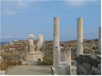 이런 연유로 이곳은 그리스 전역의 모든 이들이 앞 다투어 제물과 귀한 성물을 봉헌했다. 이 거리 양쪽에는 그 봉헌물들이 보관된 신전들이 줄지어 서 있었다. 또 딜로스의 주신은 아폴론이지만 다른 신들도 자유롭게 섬겨져 이 섬 최고의 높이를 자랑하는 킨토스 산 주변에는 국제도시답게 이집트, 시리아 신들의 신전도 발견된다. 비록 무너진 신전들이지만 아직도 정교하고 아름다운 조각상 돌들이 많이 눈에 띈다. 특히 거대한 남근석은 많은 궁금증을 유발시키며 건재하고 있다.