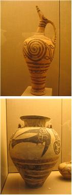 또 이 박물관에서 나를 즐겁게 한 곳은 2층 도자기 전시실이다. 동양의 도자기가 예술적 감각을 극대화하고 깊고 오묘한 빛깔에 심취하게 한다면, 그리스 도자기는 그 자체가 신화이며 한 권의 역사책이다. BC 3000년 경, 크레타 미노스 문명(청동기 문명)에서부터 나타난 토기는 로마 통치 시대로 들어가기 전까지 집중적으로 많이 만들어졌다. 그리스의 수많은 박물관은 도자기 전시장이라고 해도 과언이 아닐 만큼 유물의 수가 많다. 쓰임새도 장례용, 장식품, 생활도구, 성물... 등으로 다양했다. 예술적 감각이 뛰어난 민족답게 도자기 미술은 오늘날의 시각으로 보아도 기원전 유물이라고 믿기 힘들다. 초벌구이한 토기 정도의 수준이지만 도자기에 그려진 색채화는 인간의 본능적 예술 감각에 전율이 느껴질 정도이다.