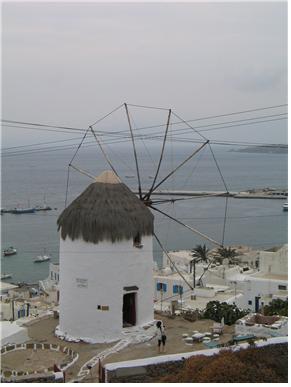 우리는 이 섬에서 그나마 역사의 향기가 남아 있는 아노메라 지역으로 갔다. 높은 곳이라 지금은 멈춘 풍차 하나가 서있다. 이곳에서 내려다 보는 미코노스가 가장 아름답고 선명하다. 미코노스의 상징이 된 카토밀리 언덕의 5개 풍차와 호라 지역의 하얀 집들이 바다와 어울려 숨이 멎을 만큼 아름답다. 자연 앞에 서면 인간은 누구나 겸허해지지만 가끔은 신을 능가하는 무언가를 이루려하는 욕망이 부풀려지기도 한다. 그 현장이 바로 미코노스가 아닐까? 신이 포기한 구차한 자연을 인간의 손으로 이런 풍광을 만들었으니 말이다.