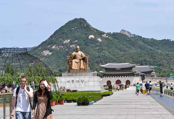 우리에겐 시청까지 이어지는 광화문 광장이 있다. 최근에는 이곳에 분수도 설치되고 세종대왕상도 만들어졌으며, 철마다 예쁜 꽃으로 화단을 꾸미는 정성도 더해지고 있다.