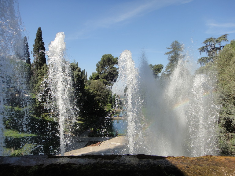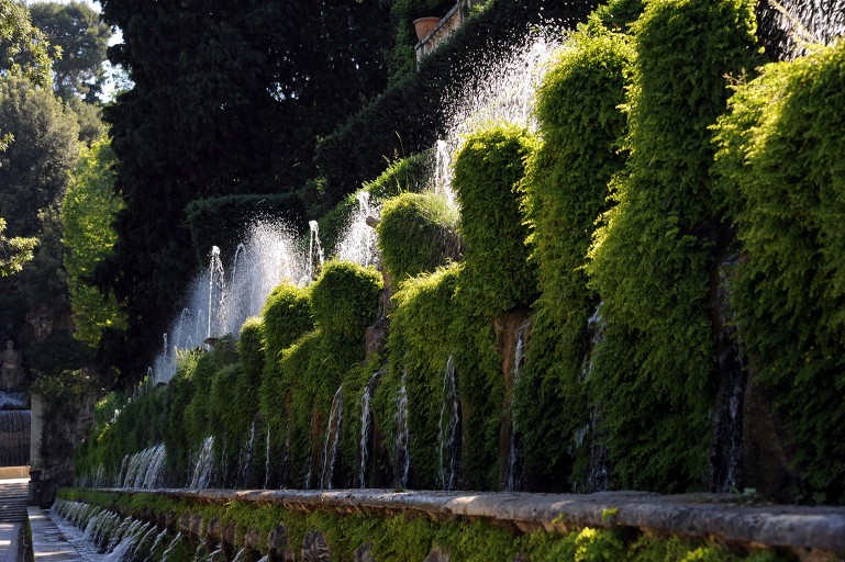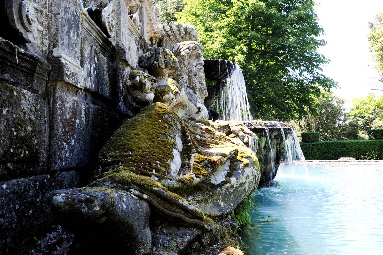 a) Neptune 분수: 앞으로 물고기 연못과 더불어 이 정원에서 가장 중심에 위치한 분수이다. 이 분수는 1920년대에 “Attilio Rossi” 가 만들었다. 분수는 서서히 밑에서 솟아오르고 점차로 위로 올라가면서 강렬하게 솟구친다. 물줄기가 대칭으로 솟아 오르면서 피라미드 형태로 솟구치고 있다. 분수의 아래로는 꽃과 나무 위로 물이 흐르고 있다.