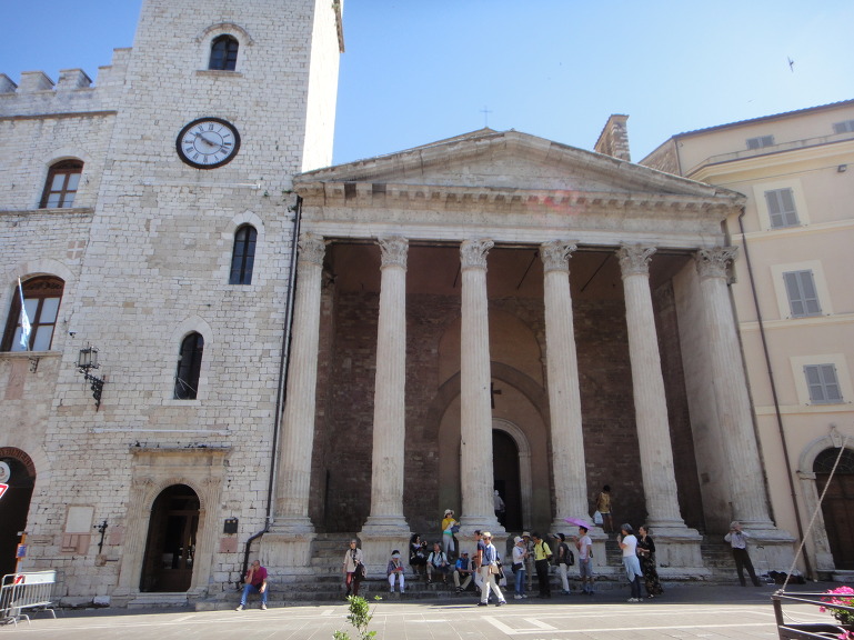 로마 시대에서부터 지어진 이오니아식 미네르바 신전은 웅장하고, 석조 계단 위의 들어선 대리석 기둥이 아름답게 장식되어 있고, 성당 안에는 성단이 엄숙하게 있고 주위에는 성화로 장식되어 있다. 그 앞에는 넓은 광장이 자리잡고 수많은 사람들로 붐비고 있다.