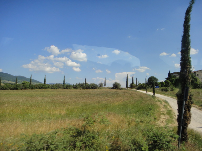 중간에 차에서 내려 우리는 우리나라의 둘레길 개념으로 만들어진 발 도로시아 트레킹 코스 일명 ”순례의 길”에 들어섰다. 오후 뜨거운 태양을 피해 5시가 넘어 걷기를 시작하여 약 5.5 km 정도를 걸으면서 이탈리아의 토스카나 지역의 아름다운 자연과 더불어 노란 후리지아 꽃, 민들레, 붉은 양귀비 등 이름 모를 들꽃들의 향연을 눈과 몸으로 호흡하였다. 도로를 따라 양쪽으로 끝없이 전개되는 푸른 구릉지역의 아름다운 풍경을 뜨거운 오후의 태양열을 온몸으로 받으면서 저 멀리 언덕 위의 푸르고 외롭고 혼자 곧게 서있는 나무의 행렬, 그 끝자락에 외로이 서있는 교회와 탑 들, 너무나 목가적인 그림으로 다가온다. 그저 넓은 땅에 비옥한 농토가 그림같이 시야로 들어온다.
