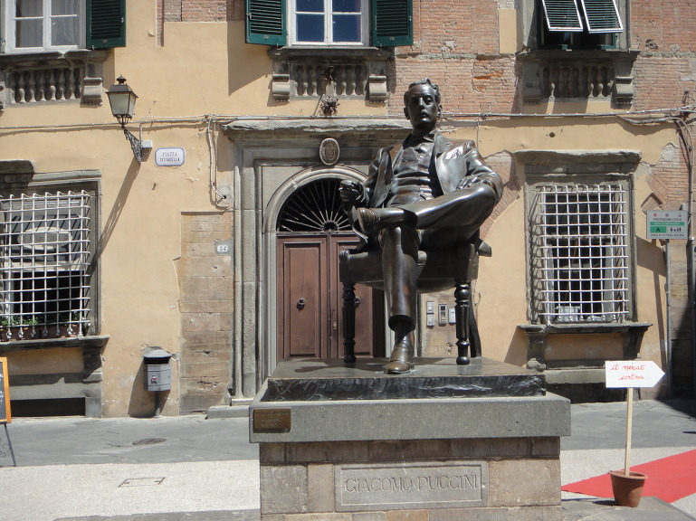 e) 푸치니(Puchinni) 생가: 중세의 성당 산 마르치노를 지나 “푸치니” 동상이 서있는 광장으로 가서 동상을 만나보고, 동상 뒤에 있는 그의 생가를 찾아간다. 그는 이곳 Lucca 에서 태어나 밀라노로 유학가서 그곳과 토리노에서 작품활동을 하였다. 이곳의 그의 2층 주택은 그가 17년간을 살았던 곳으로 지금은 그의 박물관으로 되어 있다. 이 안에는 1901년에 제작하여 사용하던 그랜드 피아노가 전시되어있고, 그의 미완성의 “트란도트”도 이곳에서 쓴 것이다.