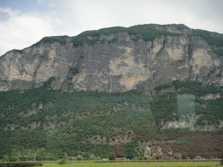 우리가 가는 좌측으로는 태양열 집열판이 늘어서 있다. 오른쪽 언덕 위로는 성채가 보이고 이제 우리는 알프스 산속으로 들어간다. 점차 고도가 높아지면서 수직으로 비죽비죽 솟은 하얀 봉우리들에는 얕은 나무들이 돌 틈에서 생명을 이어가고, 푸른 언덕으로는 드문드문 하얀 집이 한 채, 마치 동화의 나라처럼 보인다. 도로미테 산 군은 알프스 산맥 중 이탈리아 북부 산악지대로 약 5.500㎢에 이르는 넓은 면적에 석회암과 백운암으로 이루어지고, 오랫동안 풍화작용을 거처 뽀족 뾰족한 암봉의 연속으로 병풍을 두른듯이 다가오고 있다. 1차 대전에서 패한 <오스트리아 헝가리> 제국의 영토에서 1918년 이탈리아 령으로 되었다.