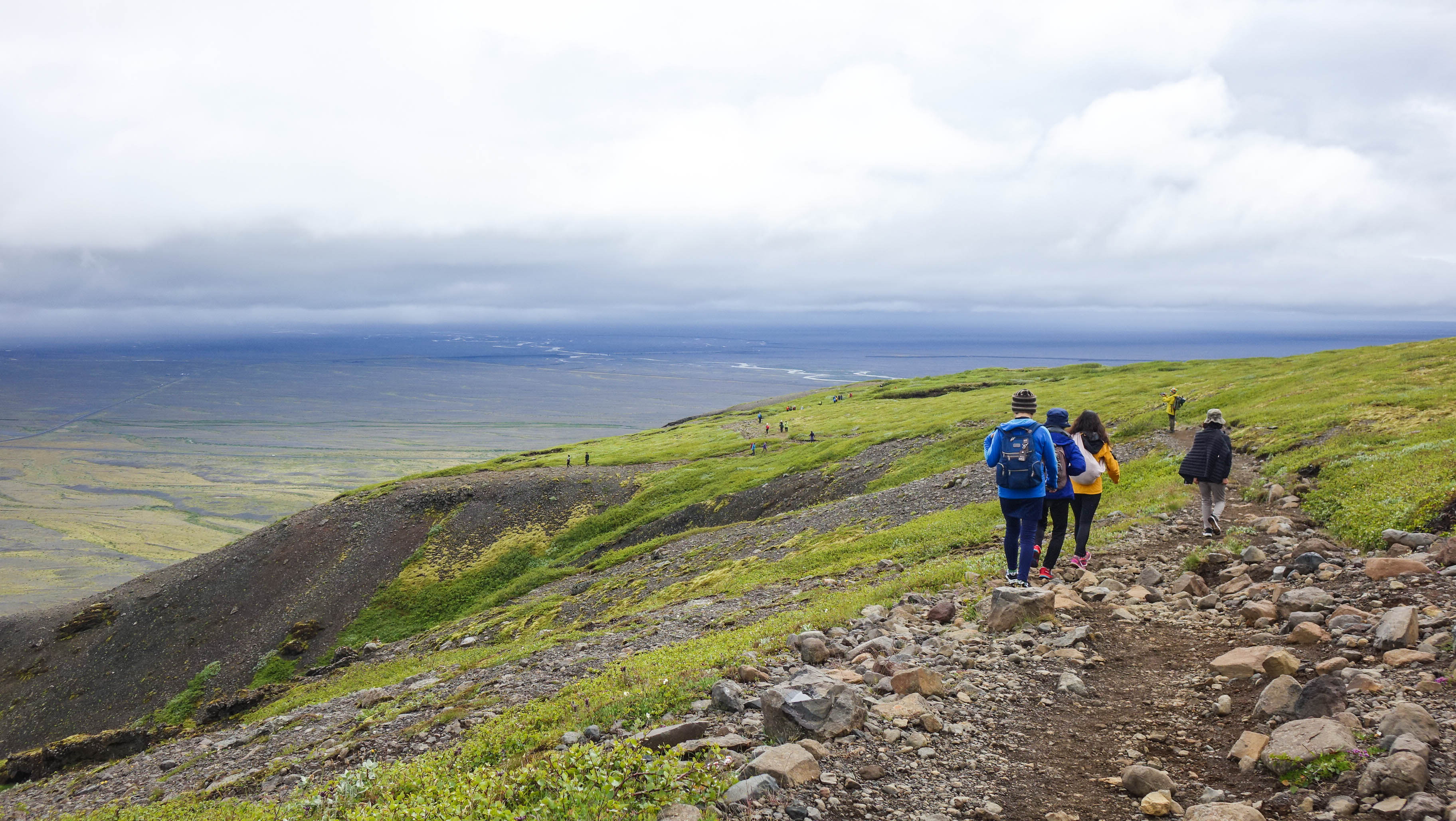 예를 들면, 스카프타펠 국립공원에서 트레킹을 할 때였다. 무릎 밑으로 오는 키 작은 풀들과 돌들로만 이루어진 산 위에서 뒤돌아 서 보니, 사뭇 색다른 풍경을 감상할 수 있었다. 정상에 오른 것도 아니었지만 시야가 탁 트여있어 지평선까지 훤히 볼 수 있었고 또 다른 방향으로 눈을 돌리면 저 멀리로 눈 덮인 산들이 끝없이 이어져 있었다.