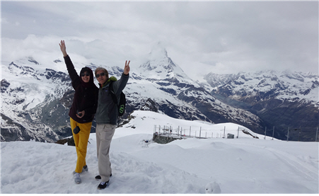 '스위스의 혼‘이라는 불리는 마테호른. 미국 영화사 ‘파라마운트 픽쳐스’로고로 등장하여 익히 이미지가 알려져 있는 산(실지 그 산은 미국에 있다고 함) 역시, 스위스 최초인 전기 산악열차를 타고 한 시간쯤 달려갔다. 달렸다고 하지만 느긋한 속도는 알프스의 소나무와 낙엽송, 드넓게 펼쳐진 설원을 즐길 수 있었고, 정상 가까이 갈수록 기차가 굽어가는 각도에 따라 마테호른의 기이한 형상을 천천히 다 볼 수 있었다.