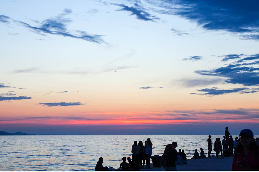 그러던 중 크로아티아 여행의 인솔을 맡게 되고 자다르라는 도시를 방문하게 되었다. 우리가 이 도시를 찾는 이유는 성 도나트 성당이나 로만 포럼 같은 유서 깊은 유적지를 보기 위함이다. 하지만 숨겨진 일정이 하나 있으니 바로 일몰 감상이다. 날씨나 기타 상황에 따라 보지 못하는 경우가 생길 수 있어서 공식적인 일정이 될 수는 없지만 여건이 허락한다면 되도록 보러 가는 것이다.