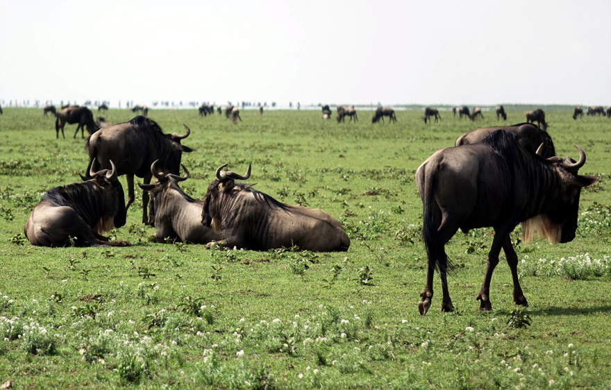 이곳에 있는 누 떼는 신선한 풀을 찾아 점점 세렝게티 쪽으로 올라가다 3월까지 많은 새끼들을 낳아 수를 불린 뒤, 4월이 되면 북동쪽으로 방향을 틀기 시작한다. 얼룩말과 톰슨가젤이 합류한 거대한 무리는 마라 강을 향해 8~9월까지 계속 북진할거고 생태계에서 가장 위대한 장관이라는 대이동을 마친 뒤 마사이마라에 도착한다. 마사이 마라의 우기가 끝나고 먹을 풀이 없어지는 11월이 되면 그들은 다시 응고롱고로 쪽으로 내려오는 이 위대한 여정을 반복한다.