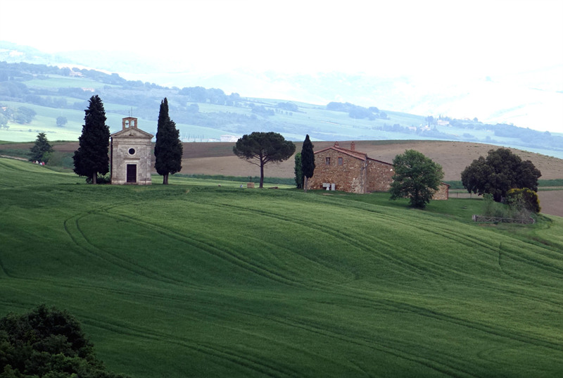 이게 웬 고생인가 싶어 꿀꿀한 마음으로 방에 난 창문을 연 순간 탄성이 터져 나왔다. 어느새 비가 그쳐 저 멀리 보이는 토스카나의 초록빛 구릉지가 한 눈에 들어왔기 때문이다. 촉촉이 젖은 초원위에 낮게 깔린 구름과 드문드문 서있는 사이프러스 나무들을 쳐다보고 있자니 어지러웠던 마음이 편안해지는 것 같았다.