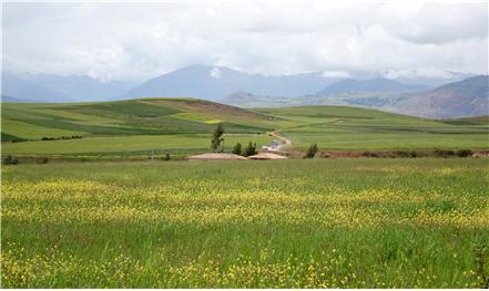 전 날 긴장된 마음으로 마추픽추를 갔다면, 소금밭과 모라이로 가는 길은 편안하고 가벼웠다. 실로 상쾌했고 아름다웠다. 거대한 안데스 산맥에 펼쳐진 고원의 능선은 넓고 넓은 하늘 아래, 노란 유채꽃과 보리밭, 감자밭들이 색의 향연으로 한 폭의 수채화처럼 보였다. 이 목가적 풍경은 해발 3380m로 이어졌고 그 산길 한 경사면에 작은 물웅덩이가 모여 하얀 소금밭을 이루고 있었다.