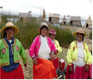 안데스 산맥의 만년설이 녹아 만들어진 거대한 호수에는 둥둥 떠 있는 많은 섬 중 ‘우로스’가 있다. 호수에서 자라는 ‘토토라’라는 갈대를 겹겹이 쌓아 그 위에 집을 짓고 사는 ‘떠 있는 섬이다. 그 섬들은 수평선을 가로지르며 울긋불긋 마치 세트장 같은 느낌으로 떠 있었다. 페루 쪽 티티카카 호수는 이미 오래 전 관광지가 되어버려 본래의 모습을 많이 잃어버렸다고 하지만, 그 광경 앞에 서면 놀라고 신기할 수밖에 없다. 사람은 어떤 환경에서건 어떻게 살아 갈 수 있는지 지구촌의 한 단면을 보여주는 것 같다. 그들은 한 섬에 일가친척이 모여 살면서 협동하여 집을 짓고 수공예를 만들어 팔거나 어업과 관광수입으로 살아간단다. 작은 운동장만 한 곳에 갈대를 엮어 땅(바닥)을 만든 다음 그 위에 움막 같은 집을 몇 채 지어놓고 함께 산다. 이집 저집 고물거리는 아이들이 뒤뚱거리며 놀고 있었고, 비슷비슷한 몸매에 원색의 옷을 입은 여인들이 여행객들을 맞이하고 떠나보내면서 손을 흔들며 작별 노래를 불러주는 모습은 사뭇 정겹기도 했고 쓸쓸해 보이기도 했다.