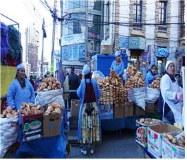 태양의 섬이 있었던 코파카바나에서 볼리비아 수도 라파즈로 향했다. 해발 3700m에 위치한 이 도시는 세계에서 가장 높은 곳에 자리잡은 수도다. 하늘과 가까운 이 공중도시는 그 높이도 모자랐는지 공중에 케이블카를 운행하고 있었다. 끔찍한 교통 체증과 산동네 사람들의 교통수단으로 2014년에 개통되었다는 이 신통한 케이블카를 외곽 도시 엘 알토에서 라파즈로 진입할 때 타 보았다. 마치 관광 케이블카를 타는 기분처럼 신나고 재미있었다. 산악지대의 밀집형 도시가 한 눈에 내려다보이고, 가파른 산에 빼곡히 들어찬 붉은 벽돌의 낡은 집들과 고층빌딩과 천막들이 파노라마처럼 펼쳐져 보였다. 정말이지 도시가 한 눈에 조망되었다. ‘라파즈’가 ‘평화’를 의미하지만, 결코 평화롭게 보이는 풍경은 아니었다. 숨이 막힐 듯 꽉 찬 건물과 매연과 많은 인파들로 정신이 없었다. ‘포위된 도시’같은 느낌이었다. 더욱이 남미에서 가장 치안이 좋지 않다는 선입견까지 덧붙여 한 나라의 이미지가 순간적으로 포착되는 것 같았다.