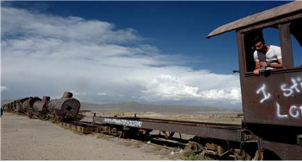 시골 역사 같은 공항을 나와 지프를 타고 우유니로 향한다. 가는 길에 ‘기차의 무덤’을 만났다. 그야말로 지평선이 뻗어있는 황량한 벌판에 기차가 너브러져 있었다. 바퀴는 철로를 벗어나 잡초와 모래에 박혀있었고 객차는 뒤틀린 채 녹슨 고철덩어리가 되어있었다. 1890년 때부터 볼리비아와 칠레의 연안을 오고가며 광물을 실어 나르던 화물열차는 1960년 폐차되면서, 이렇게 정차하여 기차의 무덤이 된 것이다. 묘하게도 이곳은 묘지라는 장소의 적막함과 쓸쓸함이 가득 배어있었다. 광활한 대지 위에서 죽을 힘을 다해 버티다가 결국 흉흉한 몰골이 된 기차의 모습은 의도하지는 않았지만 설치미술 같은 작품이 되어버린 듯 했다. 여행객들은 기차에 기어오르고 사진 찍는다고 온갖 포즈를 취하며 즐거워했지만, 이 묵직한 풍경에는 묘한 여운이 있었다.