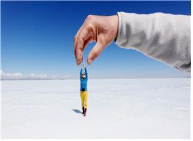 이 기이한 세계를 이제 벗어나야 할 시점이었지만, 점심을 먹고 힘을 얻은 일행들은 해가 쨍쨍 쏟아지는 순백의 소금 사막을 다시 산책했다. 그 아쉬움을 사진놀이로 마무리했다. 원근감이 무시된 공간에서 피사체가 이상하게 나타나는 신기한 현상을 즐거워하며 무거운 몸으로 뛰어 오르고, 집게손가락으로 남편을 찍어 올리는 장난까지, 아름다웠던 우유니 사막 여행은 그렇게 끝이 났다.