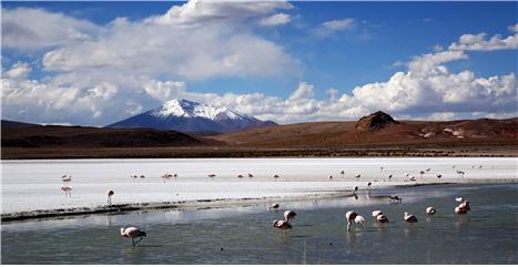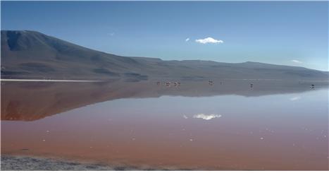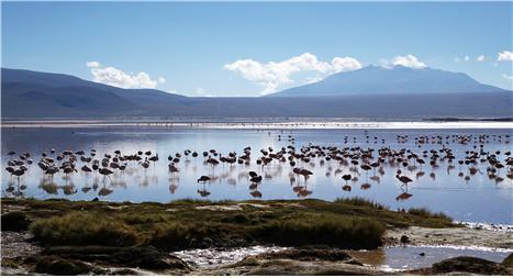 알티플라노의 특색은 눈 덮인 설산과 화산을 배경으로 그 사이 많은 호수들이 흩어져 있다. 우리가 가 본 ‘카냐파 호수’ ‘에디온다 호수’ ‘온다 호수’ ‘콜로라도 호수’들은 해발 5000미터대에 위치해 있었다. 이 호수들은 파란 하늘 아래 신비한 고유의 색을 가지고 있으며 그 안에는 플라밍고가 서식하고 있었다. 고요한 수면 위에 반영된 설산이 호수 안에 들어있고, 플랑크톤의 색에 따라 그것을 먹고 사는 홍학도 같은색을 띠었다. 호수 역시 물감을 풀어 놓은 듯 붉거나 희거나, 초록색이었다. 호수에 사는 미생물과 광물질에 의해 화려한 색을 띠고 그 안에 홍학 떼들이 유유히 모여 있는 모습이 신비해 보였지만, 왠지 호수마다 적막하고 쓸쓸한 느낌을 안겨주었다. 수 만년 동안 고여 있는 이 고원의 침묵이 호수에 가라앉아 있는 듯, 그런 적요가 느껴졌다.