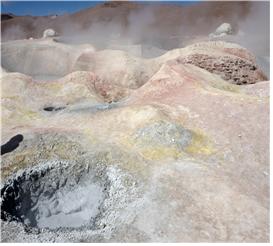 이른 새벽 숙소를 나오니 땅은 서리로 살짝 얼어있고 냉기가 덮쳐왔다. 다시 지프를 타고 어제에 이어 알티플라노를 달려 아타카마로 향했다. 고원의 차고 싱그러운 공기와 광야에 스며드는 이른 아침의 부드러운 햇살을 보면서 대지를 달렸다. 오랜 세월 바람에 깎여 그 자체로 예술작품이 되어버린 일명 ‘바위 숲’은 마그네슘으로 뭉쳐진 돌덩어리들이 광야의 거친 나무처럼 자라 있었다. 신비한 물빛의 콜로라도 호수와 고도 5000m을 넘어서자 땅의 갈라진 틈 사이로 여기저기서 피어오르는 수증기와 유황냄새와 용암이 끓고 있는 ‘마냐나 간헐천’을 지났다. 천연 온천에 잠시 머물며 몸을 담그거나 발을 담그며 그간 달려왔던 피로를 푸는 여행객들이 모여있었다. 그리고 칠레 국경을 넘는다. 볼리비아에서부터 함께한 당차고 매력적인 가이드 글로리아와 3박4일 동안 우유니와 알티플라노를 종횡무진 안전하게 달려왔던 듬직한 드라이버들과 작별하였다. 최선을 다해 소임을 다했던 그들과 아쉬운 시선을 나누며 인사를 하였다.