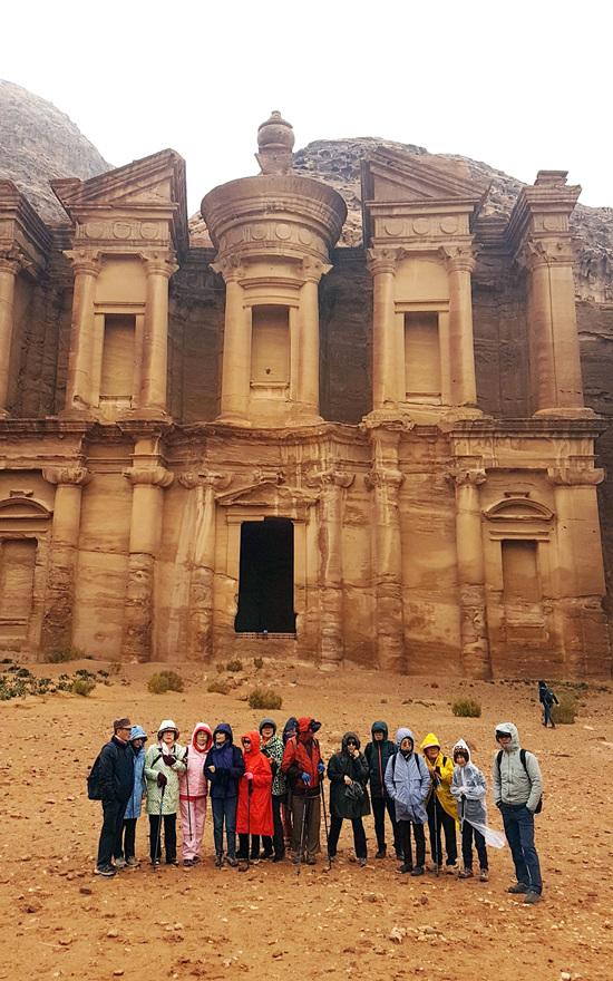 다음날 아침 일찍 다시 페트라로 향했다. 기온은 거의 한겨울, 비까지 추적추적 내리고 있었다. 예상보다 빨리 알 데이르 트레킹이 마무리되었다. 사실 너무 추워서 정신없이 걷다보니 어느새 알 데이르 앞이었던 것 같다. 점심식사 후 심기일전하여 어제 시도하지 못했던 알굽타 트레킹에 나섰다. 오전 트레킹보다는 난이도가 좀 있는 편이었지만 잠시 파란 하늘도 맛보고 위에서 내려다보는 알카즈네가 생각보다 훨씬 멋있었고 또한 낙오자 없이 모두들 건강하게 하산하여 다행이었다. 모두들 다리는 천근만근이었지만 모든 것을 쏟아 부었기에 마음은 가벼웠다. 이틀에 걸쳐 할 일정을 하루에 다 해버렸으니 내 욕심에 손님들을 너무 힘들게 한 것이 아닌가, 무리가 되었을 법도 한데 모두들 웃는 얼굴로 서로서로를 격려해주셨다.