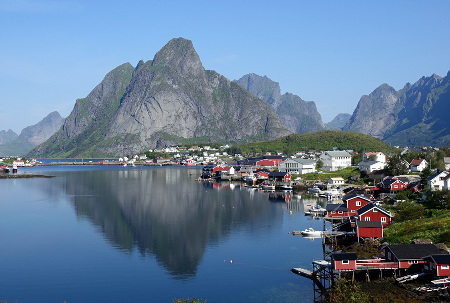 여행 중‧후반부 피오르드를 건너고 또 건너 로포텐 제도에 다다르면 유명 애니메이션 겨울왕국의 모티브가 된 레이네(Reine)와 만난다. 바람이 없고 맑은 날이면 물결이 일지 않는 바다에 그림 같은 마을이 풍덩 빠져있는 데, 정말이지 ‘말도 안 되는 풍경’이란 이런 걸 두고 하는 말이 아닐까 싶었다.