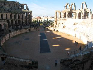 오늘은 튀니지 국토를 가로질러 남으로, 남으로 내려간다. 리비아와 맞닿은 국경 지대까지 갈 것이다. 호텔을 출발해 고속도로를 달렸다. 튀니지는 국토 전체가 올리브 밭이라 해도조금도 지나치지 않다. 일정한 간격을 두고 끝없이 서 있는 올리브 숲을 보면 올리브가 왜 서양 신화의 모티브이고 생명의 근원인지 몸으로 느껴진다. 페니키아인들이 이곳에 정착하기 전까지 북아프리카는 석기 시대 수준이었다. 카르타고는 그런 원주민의 삶을 바꾸어 놓았다. 과일 나무(올리브, 포도, 무화과, 아몬드, 석류 )의 전래와 영농기술, 포도주 양조법, 공예기법, 복식 (넓은 소매 달린 긴 튜닉과 망토) 등등 중동의 과학적 기술을 그대로 옮겼다. 특히 이곳 기후와 토양에 적합한 올리브 농사는 이곳을 지배하는 모든 나라들의 주머니를 두둑하게 해 주었다. 그래서 마그레브 국가 중, 면적으로는 작은 나라지만 튀니지 땅은 모두가 탐내는 복권이 되어 버렸다. 카르타고, 로마, 비잔티움, 아랍, 오스만 투르크, 스페인, 프랑스..... 저 작고 푸른 열매는 이 땅의 영광이며 고난의 근원이었다. 그러나 인류의 역사를 보면 동전의 양면처럼 여러 종족과 문명이 충돌한 뒷면에는 의식의 확대와 문화의 다양성이 이루어낸 유산이 남기도 한다. 오늘날의 튀니지는 주변 국가, 리비아, 알제리에 비해 안정된 사회망이 구축되어 있다. 19세기 유럽 열강의 식민지가 되기 전의 알제리, 리비아는 튀니지에 비해 조직화된 국가가 존속한 역사가 없다. 두 나라는 유럽의 손아귀에서 벗어나기 위해 많은 피를 흘렸다(리비아-이탈리아, 알제리-프랑스). 또 그들이 떠난 뒤에는 극단적인 이데올로기의 논쟁에 휩싸여 나라 발전의 걸림돌을 만들었다. 그러나 유연한 사고를 가진 튀니지는 이미 1850년대에 아랍 세계 최초로 노예 제도를 철폐 했고, 오랜 타협과 외교 공세로 유혈 없이 프랑스로부터 독립을 쟁취했다(1956년). 독립 후에는 하비브 부르기바(1903∼2000년)라는 걸출한 대통령이 있어 극단적 종교에 얽매이지 않은 열린 정치를 했다. 다양한 문화를 수용한 단일 문화권이 형성된 튀니지는 국민을 동원하고 질서를 유지하는데 주변 국가보다 훨씬 유리했다. 하비브 부르기바 대통령은 터키의 케말 파샤와 항상 비교된다. 그러나 이런 멋진 대통령도 말년에는 이 나라는 나 아니면 안 된다는 망상에 독재를 하다 쫓겨나 연금 상태에서 죽었단다. 우리나라도 이런 비슷한 사람이 있었지? 아마도..... 그는 일부일처제, 희잡의 의무조항 철폐, 이슬람법 법원 폐지, 모든 이슬람 교육기관 공영화 등 이슬람 전통과 다른 사법체제를 지향했다. 특히 여성의 사회 진출을 적극 권장해 오늘날의 튀니지에는 다양한 분야에 여성들이 활동하고 있다. 얼마 전 조선일보에서 튀니지의 여성 장관이 우리나라를 방문해 인터뷰한 기사를 본 적이 있다. 그 장관은 튀니지 여성들의 사회 진출에 대해 이야기 하면서 판사의 27%, 변호사의 31%, 의사의 42%가 여성인 것을 자랑했다. 여권신장 면에서 우리보다 훨씬 낫다. 1998년, 법에 따라 미혼모에게 자신의 성까지 물려 줄 수 있는 권리를 주었다. 튀니지가 세계에서 6번째로 아동보호법을 제정한 나라라는 건 놀라운 일이다. 이런 열린 사고는 부유하지는 않지만 두터운 중산층을 가질 수 있게 했다. 또 로마시대에 건설된 도로망은 지금도 유용해 아프리카 어느 나라보다 교통망이 잘 되어 있어 이동에 편리하다. 이러니 이 세상 인간사, 영원한 비극도 영원한 희극도 없는 것이다. 버스가 고속도로에서 내려 도착한 곳은 엘젬이었다.처음 로마의 이 엘젬 경기장 사진을 보았을 때 충격을 받았었다. 아무리 아프리카가 로마의 땅이었다고 해도 거대한 콜로세움은 믿기지 않았기 때문이다. 그것도 권력의 중심지, 지중해 연안과 떨어진 곳에 말이다. 그런 건축물이 바로 내 눈 앞에 있다. 사진 속의 모습보다 실제의 모습은 더 감동적이다. 싸이즈만 로마의 콜로세움보다 작지 쌍둥이처럼 똑같다. 아니 형체는 더 완벽하게 남아있다. 더욱 즐거운 것은 이 경기장 모든 곳이 내 발길을 허용한다는 점이다. 278년에 완성된 경기장은 1,700여 년을 버티고도 그 웅장한 기운은 전혀 손상되지 않았다. 12,000명을 수용할 수 있는 크기다.이 지역을 거쳐 간 많은 세력들도 찬사와 존경을 표했을 것 같다. 지하에는 검투사와 맹수들이 대기 했던 작은 방들이 그대로 남아있고 경기장으로 곧장 들어가는 엘리베이터 시설도 있다. 이 일대가 로마시대 최고의 사자 공급지였음을 감안하면 이 방들 가득 야성이 살아있는 건강한 맹수들이 가득했을 것 같다. 경기장을 뱅글뱅글 돌아 가장 높은 3층에 서서 원형 경기장 전체를 내려다보면 전율도 느끼지만 이 거대한 건축물이 왜 이곳에 세워졌는지가 더 궁금해진다. 이 거대한 유적을 이렇게 온전한 모습으로 품고 있는 현재의 엘젬은 너무 초라했다. 인구 15,000명 정도의 엘젬은 이 원형 경기장과는 아무런 상관관계를 찾을 수 없을 정도로 작고 소박하다. 오히려 거대한 신의 모습을 한 유적에 치여 납작 엎드려 있는 형상이다. 그러나 이 도시의 역사는 화려했다. 카르타고 시절에 생겨난 이 마을은 작