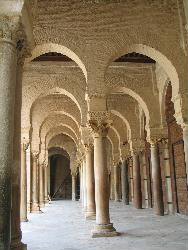 처음 찾아간 곳은 로마 시대의 물 저장소였다. 로마군 주둔지였다는 이 도시는 아랍인들이 차지하기 전부터 중요한 지역이었나 보다. 저수조를 한 눈에 내려다 볼 수 있는 망루에 올랐다. 생각보다 크고 보존 상태도 훌륭하다. 40km 정도 떨어져 있는 수원(水源)에서 물을 끌어 왔으며 이런 저수조가 15개 있었단다. 현재 발굴된 것은 2개였다. 사막 한가운데 이런 인프라가 있었기에 아랍인들이 쉽게 정착했고 한 왕조의 수도가 될 수 있었을 것이다. ![]() 다음은 <이발사의 모스크>라고 알려진 자오이아 시디 사하브(Zaouia sidi sahab)로 갔다. 무하마드의 이발사였다는 시디 사하브라는 성인의 무덤이 있는 곳이다. 생전에 그는 무하마드의 턱수염 세 가닥을 지니고 다녔단다. 이슬람교도로서 예언자의 몸을 만지고 수염까지 지녔다면 부러움의 대상이자 추앙도 받았을 것이다. 또 이 근방에서 있었던 지하드(성전)에 참전해 전사까지 했으니 순교자의 영예까지 얻는 건 당연지사이리라. 알라신 이외 어떤 개인숭배도 허락하지 않는 이슬람 교리를 볼 때 개인의 기념 묘를 가졌다는 건 엄청난 영광이다. 그래서인지 이곳은 현지인들 사이에 알라신을 찬양하는 성소라기보다 자신들의 복을 기원하는 장소로 더 알려져 있다. 나는 건물 자체가 흥미로웠다. 좋게 말하면 여러 시대 건축 양식이 혼합된 문화의 전시장이지만 한편으로는 잡탕식, 퓨전식으로 종교 건축물이 갖고 있는 신성한 기운이 전혀 느껴지지 않았다. 아랍풍의 장식과 채색도 거칠고 너무 다양해 조화로움이 전혀 없다. 더욱 성인의 묘가 안치되어 있는 장소는 넘치게 많은 카펫과 덮개가 어지럽게 널려있어 보는 것만으로 질식할 것 같았다. 묘지기는 옅은 향수가 첨가된 분무기 물을 뿌려주면서 성수란다. 이것 또한 공짜가 아니다. 얼마간의 성의 표시를 하도록 유도한다. “속되도다. 속되도다.” ![]() 진정한 이 도시의 성역 그랜드 모스크로 갔다. 조금 이른 시간이라 모스크에 들어섰을 때 아무도 없었다. 알라신의 영역은 고요하고 신성했다. 바깥 세상과 완벽하게 분리된 모스크는 이집트 조세르 왕의 장제전을 연상시켰다. 임호테프는 계단식 피라미드뿐만 아니라 세상과 단절된 내세의 장제전을 건설했다. 그 장제전을 통과해 광장에 섰을 때 나는 현세와 동떨어진 햇살과 신의 호흡을 느꼈었다. 지금 그때와 똑같은 감동이 밀려왔다. 동서남북 100m는 됨직한 경내는 깨끗한 대리석이 깔려있고 미나렛을 포함한 네 면의 회랑은 끝없는 돌기둥 숲을 연상시켰다. 둥근 말굽형 아치는 신의 영속성을 상징하듯 우리를 일시에 자신의 자손으로 만들어 버렸다. 현재 남아 있는 미나렛 중 세계 최고의 장수를 자랑하는 미나렛(724∼727년)은 미욱할 정도로 우람하다. 예술적 가치보다 실용적이며 신의 영역임을 증명하는 상징적 의미에 충실한 건축물이다.높이는 30m 정도지만 그 앞에 서면 쿠푸 피라미드 같은 거대함이 느껴지니 아주 성공적인 미나렛이다. 오늘날의 미나렛은 신의 영역을 암시하는 상징적 의미와 신을 경배하는 찬미의 예술적 가치를 높이 산다. 하지만 초기 모스크의 미나렛은 바다와 사막 한가운데서 등대나 망루, 혹은 기념탑으로서의 역할이 더 컸다. 미나렛과 마주한 면에 미흐랍이 있는 기도실이 있다. 우리는 무슬림이 아니어서 그곳까지는 들어 갈 수 없었다. 이 모스크에서 내 호기심을 가장 자극시킨 건 150여 개의 돌기둥이었다. 모스크를 떠받치고 있는 기둥은 대부분 로마의 것이었다. 코린트 기둥이 다수를 차지하지만 자세히 보면 도리아, 이오니아식 기둥도 있다. 이 모스크가 처음 세워진 것은 7세기경이지만 이 도시 최고의 전성기 아글라브 왕조(800∼909년) 때, 완전히 해체(836년)해서 현재와 같은 모습으로 다시 지었다. 그 때 카르타고와 수스 근처 로마 유적지를 뒤져 곧고 반듯한 석재만을 골라와 이 모스크를 완성했다.아랍식 건축물에 로마의 화려한 머릿돌 기둥들이 섞여 있어 기형처럼 보이지만 문명의 유한성, 내지는 순환, 무상함 같은 상념에 빠져들게 한다. 이 도시는 수니파 이슬람권에서 메카, 메디나, 예루살렘에 이은 네 번째 성지다. 무슬림이 이 도시를 일곱 번 방문하면 그들의 최대 의무인 메카 순례를 면제 받을 정도다. 49개의 모스크가 있다는 카이로우안 성지 도시. 그 중심에 그랜드 모스크가 있는 것이다. 우리는 모스크를 나와 메디나를 자유롭게 구경했다. 카이로우안은 튀니지의 보석이 아니라 지구의 보석이었다. 카이로우안은 아랍인들이 북아프리카에 진출했을 때 가장 중요한 이슬람 진지(陣地)였다. 카이로우안의 아랍어 어원(Qayrawan)이 ‘무기고’ 혹은 ‘숙영지’라는 의미이다. ![]() 튀니지 지도를 놓고 보면 아랍인들이 왜 이곳을 수도로 삼았을까? 하는 의문이 생긴다. 670년 우크바 벤나피라는 전사가 세운 도시는 바그다드의 칼리프 (아바스 왕조)로부터 통치권을 부여받은 아글라브, 파티마, 지라드 왕조의 수도였다. 내 의문에 깔끔하게 대답해주는 책은 없지만 그런대로 비잔틴 함대가 순찰하는 바다에서 떨어져 있어 안전하고 내륙 깊숙이 있는 거친 베르베르인들의 위협에서도 벗어나 있다는 이