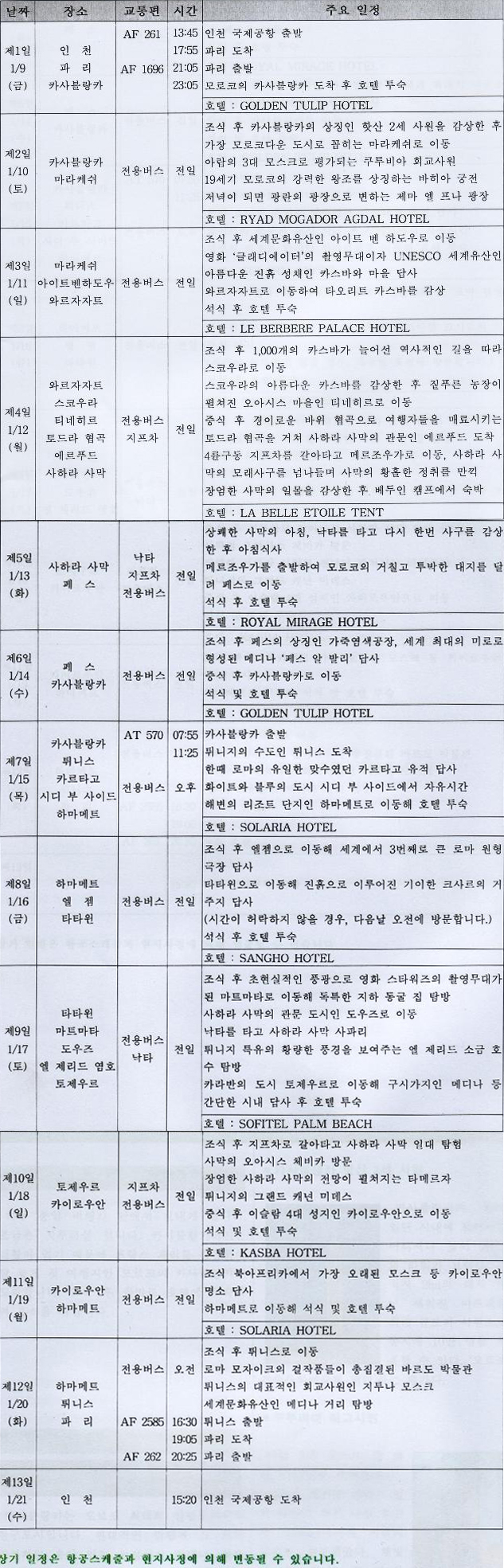 | 이 글은 서울에 사시는 박길란님이 보내 주셨습니다. 박길란님은 2009년1월9일부터 21일까지 13일간 테마세이투어와 함께 모로코/튀니지 여행을 다녀 오셨습니다. 글을 보내 주셔서 감사합니다. |