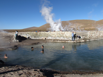 | 티에라 아타카마 호텔에서 2박을 하고 오늘의 관광을 마치고는 칠레의 수도 산티아고로 가는 비행기를 타야 한다. 오후 6시 반에 떠나는 비행기라 시간의 여유는 넉넉하였다. 이른 아침부터 움직인 것은 노천에 있는 간헐천으로 가 일출을 보자는 뜻이었다. 시간이 일러서 인지 쌀쌀했다. 버스에 오르자 안내양? 이 담요를 하나 씩 나누어 준다. 호텔에서 빌려온 건지 아님 현지 여행사 측에서 준비 한 것인지는 알 수 없으나 암튼 무릎을 덮으니 따뜻하였다. 아, 여기서...그 안내양에 대해 설명을 해야 겠다. 우리가 이곳 산페드로에 도착을 하고나서 부터다. 몸집이 거대한 남자, 현지가이드가 칠레 국경까지 마중을 나왔었고 그 날은 밤늦게 티에라 아타카마 호텔에 투숙을 하였었다. 그리고 다음 날 아침 소금 사막으로 가는 첫 출정?부터 버스에 그 남자 가이드 외에 젊은 처자가 한 명 더 탔다. 뭐 이렇다 저렇다, 하는 설명도 없이. 그녀가 처음 한 일이 버스를 탄 우리에게 사탕을 나누어 주는 일이었고 그 다음에 작은 디카로 우리들의 사진을 찍는 거였다. 그 당시의 생각엔...아, 우리 일행을 이렇게 가이드 했다...하고 여행사 측에 보고용으로 찍는 줄 알았다. 그리고 그녀도 현지 여행사 직원일 줄 알았고. 헌데 그게 아니었다. 시간이 지나면서 알게 된 건 그녀는 남자 가이드가 데리고 온, 조카라 하지만 정말인지 아님 여자 친구인지. 암튼 그 두 남 녀 는 우리 일행을 목적지에 내려놓으면 그 때 부터 자기 둘의 사진이며 주변 경관부터 우리 일행의 사진까지 정신없이 찍어 댔다. 인솔자인신 사장님, 처음에 기막혀 하시더니 헐 수 없는 상황이란 것을 아신 뒤부터는...잘, 논다, 하는 표정으로 관망. 우리의 스케줄에 영향은 안 끼쳤으니 뭐라 할 수도 없었다. ![]() 그렇게 새벽부터 부지런히 간 간헐천. 뜨거운 김이 여기저기서 솟아 나오고 있었다. 이미 우리 일행 보다 더 먼저 도착한 유럽인들이 여러 군데로 흩어져 뜨거운 김을 쏘이며 즐기고 있다. 그 시각, 저 멀리 보이는 만년설의 산이 조금씩 설익은 토마토 같은 색이더니 점점 붉어져 잘 익은 홍시처럼 변해간다. 또 그쯤에 우리 버스의 운전기사, 가이드와 문제의 그녀가 아침상을 보아 놓았다. 버스에 싣고 온 작은 탁자에 식탁보를 씌우곤 쥬스와 샌드위치를 제공하는 거다. 샌드위치는 가이드가 일회용(절대로 일회용이 아닐 것이라는 사장님의 말씀)장갑을 끼고 직접 만들어 주는 거다. 식빵에 치즈 한쪽과 햄 을 넣은 것인데 나는 내키지 않아 먹어 보질 않았으니 그 맛을 설명 할 길이 없다. 암튼 그 일회용 장갑(우리나라에서 사용하는 것과 같은 것)은 그날 점심 역시 그렇게...식당이 아닌 길에서 먹게 되었는데 그 때도 사용하였다. 어찌 되었던 그렇게 아침을 먹게 되었는데 커다란 페트병에 물을 담아 뜨거운 온천물에 담가 놓았더니 무지 뜨거워 진거다. 그 물에 탄 코코아가 추워서 인지 그렇게나 맛있을 수가 없었다. 이럴 때 이런 곳에서 쌀쌀한 아침에 해장으로 컵라면을 먹었다면, 우와~~ 라면 회사 사람들 이런 곳에 와서 광고 찍으면 대박 날텐데...하는 생각이 났다. 추워하면서 돌아다니다가 찾아 낸 곳이 있었으니 그야 말로 온돌 방 이었다. 꽤 여러 명이 앉을 수 있는 제법 큰 평평한 돌이 있는데 그 아래에서 뜨거운 물이 끓고 있는 거다. 한 동안 앉아 있던 사람이 방을 빼 줘야 할 정도로 뜨거웠다. 그런 곳을 찾아내어 자리 잡고 앉은 일행들은 재미있어 죽겠다는 표정으로 으쌰 으쌰다. 해가 중천에 떠오르자 이번엔 노천온천으로 갔다. ![]() 수영복은 준비 해왔지만 여자들은 들어 갈 생각을 하지 않는다. 남자들 역시 단 한 분만이 용감하게 들어갔다. 더운 소금물에 수영을 하고 난 후의 절차가 귀찮아서 다들 구경만을 즐긴거다. 혼자 입수 하신 ‘이’ 선생님, 유럽 여자들 틈에서 기분 좋아 싱글 벙글. 와이프 되시는 ‘김’ 여사, “여보, 너무 뜨거운 데 조심 하슈, 어디 어디...데이면 안 되지” 그렇게 간헐천에서 이른 새벽을 보냈고 역시나 길에서 점심을 먹게 된 곳으로 옮긴 곳은 칼라마. 이곳엔 볼리비아 원주민 들이 스페인 지배를 받기 전 부터 다녔던 성당이 있는 마을이다. 마을은 입구부터 황량함 그 자체였다. 무너지다 만 흙담이며 양철 지붕을 얹은 , 금방 이라도 허물어져 버릴 것 같은 집들이며. 내 앞에 가던 사장님이 나를 기다리고 있다가 한 마디 툭 던진다. “저, 이곳 분위기가 마치 예멘 같지 않아요?”하고. 그랬다, 예멘의 쓸쓸하면서도 황량함이 비슷했다. 동네를 한 시간 쯤 돌아다니다가 큰 나무가 그늘이 되는 곳에 식탁이 다시 차려졌고 일회용이 아닌, 구멍 날 때 까지 사용할 것 같은 그 장갑 낀 손으로 만들어 주는 점심 샌드위치가 준비되었다. 이곳에서의 마지막 관광지는 얼마 전 사고가 났던, 세계적으로 유명한 추타카마타 광산이었는데 아쉽게도 일반인들의 접근이 금지 되었다. 탄광 사고 난 후 정부의 조치가 그렇게 되었다는 거였다. 그 근처까지 갔으나 버스안에서 탄광 구경을 하는 것으로 만족? 할 수 밖에 없었다. 그리고 우린 산티아고로 가기 위해 비행장으로 향했다. | ||