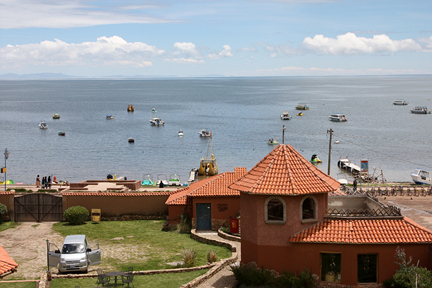 | 오랜 비행 끝에 안데스 여행의 첫 번째 숙소인 볼리비아의 코파카바나에 도착을 하였다. 흔히들 볼리비아의 수도로 알고있는 라파즈(행정수도이고, 사법 수도는 수크레다)에서 버스로 이동을 하는데 두 시간 이상을 간 것 같다.(이 때부터 머리가 아파 정신이 하나도 없었다)이곳에 호텔을 정한 것은 티티카카 호수가 근처에 있기 때문이었다. 하늘 아래 제일 높은 곳에 위치한다는 (3.800m)호수는 이곳 볼리비아와 페루에 걸쳐 있고 페루 쪽의 티티카카 호수에 있는 우로스 섬은 십년 전에 다녀온 적이 있다. 이번엔 볼리비아 쪽에서 가게 되는 티티카카 호수 내의 태양의 섬이다. 이슬라 델 솔이라 불리는 이곳은 잉카시대의 유적이 있다.