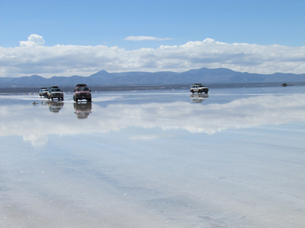 | 하루 종일 소금물과 카메라 장난을 하고 이제는 다시 이동을 해야 할 시간이 되었다. 호수를 빠져 나가는데 들어 온 곳과는 다른 곳이라 하지만 구분이 안 된다. 그래도 아쉬운 사람들은 자동차의 지붕위로 올라갔다. 그런 사람들을 위해 안전장치를 해 놓았고 올라간 사람들은 뜨거운 햇볕을 받으면서도 환호성이다. 하얀 호수 위로 달아나는 자동차는 검은 색의 한 점으로 보인다. 이 시간 이후 우리가 이동하여 갈 곳은 '산 후안'이라는 아주 작은 마을이다. 그곳에서 하룻밤을 묵게 되는 거다. 여행 오기 전, 이미 그 호텔에 대해들은 바가 있다. 호텔 전체의 방이 열 개 밖에 안 되어 이 여행을 신청 한 사람들이 더 있었음에도 다 못 받았다는... 그래 인솔자와 현지 가이드도 호텔 밖으로 나가 민박을 해야 하는 형편이라고. 다행이도 그 방 전부를 우리 일행이 예약을 하였다고 하니 오늘 밤은 온통 우리들의 잔치가 될 것 같았다. 가는 길에 잠시 들린 곳이 있었다. 이름 하여 열차 박물관... 녹쓸어 버려진 열차들이 있는 노천 박물관이다. 오래전 볼리비아와 칠레를 오고 가던 열차들이었다. 두 나라가 영토 문제로 다툼이 있고 나서 부터 열차는 제 역활을 할 수 없었다고 했다. 이제는 그렇게 버려져 오고 가는 사람들의 생리 현상을 도와주는 가림막 역활를 하고 있을 뿐이었다. 병풍처럼 둘러쳐진 설산의 안데스 산맥들이 끊임없이 우리를 따라 오며 재촉하였다. | ||