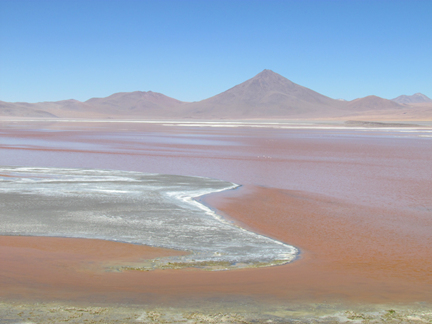 | 비행기로 이동 한 시간들을 빼고...오늘로 여행 6일 째가 되는 날이다. 그렇게나 괴롭던 고산증은 이제 많이 덜해졌다. 완전 회복은 아니고 그만큼 이곳의 고원에 적응이 되었다는 뜻이다. 오늘은 하루 종일 사막을 달려 칠레로 넘어가는 일정이다. 이른 아침 산후안의, 작지만 밀리언스스타 등급?의 호텔에서 마련해준 따뜻한 우유 한잔으로 아침을 대신했다. 엇 저녁에 예고한 대로 정확하게 여섯시에 지프차는 움직이기 시작했다. 볼리비아에서 칠레로 넘어가는 안데스 산맥의 고원 평야 지대를 '알티플라노'라고 한다. 평균 고도가 3.600m된다. 사막 여행자들의 광기의 끝이 이곳 알티플라노를 넘는 것이 아닐가? 하는 생각이 들 정도로 아름다운 정경이 펼쳐지는 곳이다. 재 작 년이던가? 티비에서 이곳을 소개 하며 ‘극한의 아름다움’이라고 제목을 붙였었다. 정말 그랬다. 세상 끝의 비경이 이곳이 아닐까 하는 생각도 들고. 울퉁불퉁한 비포장의 먼지 속으로 달리는 자동차 안에서 많은 생각이 교차된다. 왠지 아까웠고 분한 마음이 들었다. 이 극한의 아름다움을 이번 여행 한 번으로 끝내야 하는 걸까? 여행의 긴 일정과 엄청난 비용도, 또 그 원수 같은 고산증도 다 감수 할 수만 있다면 다시 한 번, 아니 두, 세 번 이라도 또 오고픈 마음이지만 그렇지 못할 현실 때문에 안타까운 거다. ![]() 병풍처럼 둘러 쳐진 설산들이 끊임없이 펼쳐졌다. 지금도 살아서 움직이는 활화산들이다. 몇 군데에서는 지금 막 뿜어내는 연기들을 볼 수 있었다. 출렁대는 안데스의 산맥들이 안내 하는 대로 따라 가다 보면 붉은 호수와 컬러플한 평야가 펼쳐지는데 안데스가 품고 있는 광물질 때문이란다. 붉은 호수뿐만이 아니다. 움직임이 없는, 낮고 고요하게 깔려 있는 호수는 마치 파란 시트지를 깔아 놓은 것 같았다. 아~~ 어찌 이 비경들을 글로 표현 할꼬? 호수 마다 이름이 붙여져 있었으나 굳이 그 이름들을 외우고 나열할 필요를 못 느꼈다. 어느 곳에선 플라멩고들의 서식지가 된 곳이 있었고 또 어디에선 그 아름다움의 극치에 호수에 몸을 던지는 일이 있어 자살 호수라는 이름이 붙은 곳도 있었다. 달리는 중간에 여러 차례 자동차는 멈추어 우리들의 광적인...표호를 부추겨 주었다. 애닯아 하는 사람은 현지 가이드뿐이다. 국경 까지 가려면 서둘러야 하고 그곳에서 세관 통과를 하려면 또 많은 시간이 걸리는데 걱정인 거다. 그래도 손님은 '왕'인데, 우린 그 왕 노릇을 최대한 누려야 했고. 인솔자인 사장님은 우리 보다 한 술 더 떠서 시간에 구애 받지 말고 마음껏 누리자고... 점심을 먹을 수 있는 식당이 있었다. 그곳 역시 말이 식당이지, 다 허물어 져 가는 움집 정도다. 이미 먼저 도착한 유럽인들이 보였다. 좁은 공간 한 쪽에 테이블을 마련해 놓고 차려진 음식들은 마치 우리나라의 닭도리탕 같은...입에 맞았다. 옥수수와 감자 삶은 것, 과일로는 아보카드(볼리비아는 아보카드가 흔했음)와 오렌지,그리고 어딜 가나 마련해 놓은 와인과 콜라. 모든 음식들에서 정성이 보였다. 부지런히 떨어진 음식을 나르는 여 주인의 웃는 모습에 넉넉한 인심이 보였다. 다시 대 장정의 시작이다. 날씨가 맑아 하늘이 작품을 보여준다. 오전 출발 할 때는 기온이 쌀쌀 했지만 한 낮이 되니 전형적인 사막의 날씨를 보여준다. 더위에 자동차의 창문을 열었더니 앞서 가는 차량이 내 뿜는 황토의 먼지가 앞이 안 보일 정도로 침입한다. 문을 올렸다 내렸다 를 계속하면서 이번에 운전을 하는 어린 기사(23살이라 했음)의 깊은 눈을 주시한다. 행여나 졸지 않을까 하여... 사실 차에 탄 우리 세 사람에게야 잠시도 눈을 뗄 수 없는 비경들이지만 기사에게는 돈 벌이를 위한 지루한 길 일 수도 있는 거였다. 앞자리, 기사의 옆에 앉은 나는 자주 그에게 먹을 것을 권하기도(한국서 가져간 오징어와 껌등)하고 알아듣지 못하는 우리말로..."졸지마" 하면서 말을 걸기도 하였다. 눈이 워낙 깊어서인지 늘 졸고 있는 것 같이 보였을까? 암튼 그 짚차와 함께 며칠 동안 운전을 해 주었던 그에게 고마움의 표시로 가져간 볼펜과 맆스틱(그곳 여자들이 무척 좋아 한다고 하여 가져간것)을 주었다. 드디어 국경에 도착을 하였다. 저녁 여섯시다. 황량한 사막에 일자로 된 작은 시멘트 건물 하나, 그것에 국경 사무실이었다. 세관 통과를 해야 하는데 오래 걸릴 것 같았다. 이미 먼저 도착한 대형 버스가 두 대 보였고 길게 줄을 선 사람들이 무지 많았다. 유럽의 여행객들은 아닌 것 같고 어수룩한 모습이 마치 남미 어느 곳에서 칠레로 이민을 오는 사람들 같이 보였다. 그렇게 보인 것은 대부분의 사람들이 가족 단위였으며 우리가 이민가방이라 하는...그런 가방들을 가졌기 때문이었다. 암튼 그 사람들이 다 통과하는데 걸린 시간이 우리가 지루하게 기다린 시간이다. 한 시간 반 쯤 기다렸으며 드디어 우리 일행의 차례가 와 한 사람씩 여권을 들고 커다란 짐 가방 까지 열어서 확인을 해야 만 했다. 어두워지기 시작하였고 지루한 세관 통과는 하루 종일 감상에 젖게 한 알티플라노의 비경들을 잠시 잊게 하였다. 무사히 통과한 트렁크를 질질 끌면서 국경 을 넘