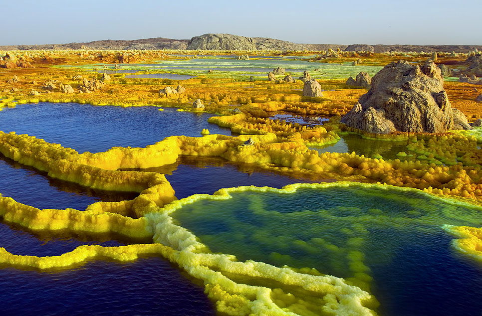 작년 EBS의 다큐프라임과 대한항공 소식지 ‘모닝캄’에 잇달아 소개된 ‘다나킬 평원(Danakil Depression)’ 역시 후자에 속하는 대표적인 곳이다. 에티오피아 북동부와 에리트레아 남부, 지부티 등지에 걸친 다나킬 평원은 뭘 기대하든 그 이상의 것을 보여준다. 확언컨대 여행마니아라면 한번쯤은 꿈꿔볼 수밖에 없는 모든 요소를 다 갖춘 곳이라고 단언 할 수 있다. 하지만 다나킬은 그만큼 많은 불편함을 요구한다. 에티오피아 북부의 메켈레에서 시작되는 다나킬 여행은 지금도 활발히 활동하고 있는 활화산 ‘에르타 알레’까지 가려면 적어도 4일의 시간이 필요하다. 온도가 섭씨 40℃에서 63℃까지 오르는 폭염이 이글거리는 다나킬의 최적의 여행 시기는 그나마 견디기 나은 12-2월 사이의 겨울시즌이다. 모든 길이 오프로드여서 튼튼한 사륜 구동차량은 필수다. 여기에 화장실이나 잠자리도 변변히 갖춰진 것이 없다. 그리고 일단 여행이 시작되면 물건을 구입할 곳이 전혀 없으므로 출발 전 미리 먹을 음식을 잔뜩 준비해가야 한다. 활화산을 오르기 위한 야간 등반도 쉬운 일이 아니다. 하지만 이런 불편함을 감수하면 여행자들은 다나킬 평원에서 상상을 초월하는 절경을 만나게 된다. 지금도 부글부글 끓고 있는 달롤의 유황천 지대와 볼리비아의 우유니처럼 끝없이 펼쳐진 소금 사막, 3시간여의 야간 등반 끝에 마주치게 되는 붉은 용암이 들끓는 에르타 알레까지… 그리고 운이 좋으면 이 땅의 주인인 아파르족의 소금 카라반 행렬도 만날 수 있다. 그래서 내셔널지오그래픽은 다나킬을 ‘지구상에서 가장 잔혹한 곳’이라고 묘사했다. 그만큼 험한 곳이란 얘기다. 이뿐만이 아니다. 다나킬은 에티오피아와 이웃국가인 에리트레아 간의 종족 분쟁 지역이며 가끔 자존심 세기로 유명한 아파르족에 의해 항상 위험이 상존하는 지역이기도 하다. 그래서 다나킬은 가고 싶지만, 아직은 갈 수 없는 곳이다. 이 지역이 안정을 되찾아 다나킬의 환상적인 모습을 우리 여행사의 수많은 여행매니아들에게 빨리 보여 드릴 수 있는 날이 오게 되길 고대해 본다. |