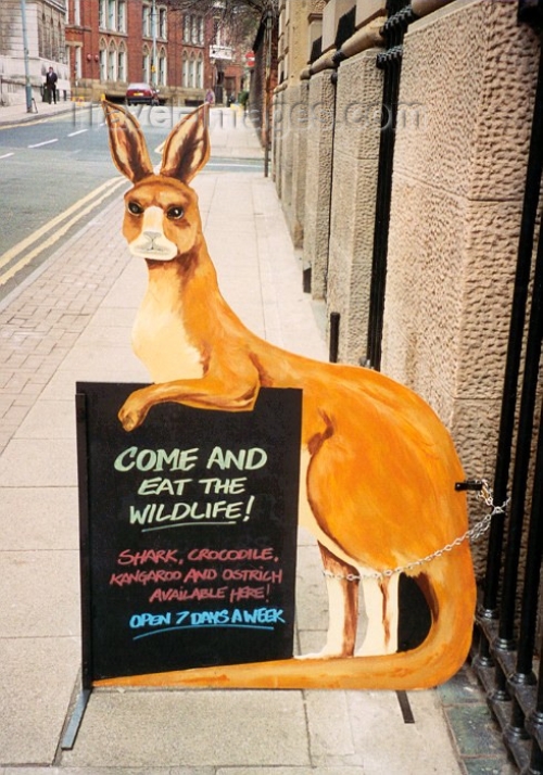 얼마 전 수백 년의 역사를 가진 중국 광서성의 개고기 축제가 큰 논란이 되었다. 장족자치구의 옥림이라는 마을에서 벌어지는 이 축제에선 대륙의 스케일답게 축제 기간 동안 개고기 샤브샤브용으로 무려 10만여 마리가 도살된다고 한다. 이 소식을 접하고 나니 전에 호주에서 먹었던 캥거루 요리가 기억났다. 호주를 상징하는 그 귀여운 캥거루가 설마 정말 선진국이라는 호주의 식탁에 오를까 생각하실지 모르겠지만 사실이다.