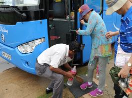 안토니오로부터 배려를 받은 조수 후쌀은 우리들을 위해 열과 성을 다한 봉사를 했다. 매일 아침, 버스가 출발하면 후쌀은 새벽에 따온 꽃 한 송이씩을 모두에게 나눠주었다. 오늘은 어떤 꽃을 받을까 하는 기대감은 하나의 작은 행복이었다. 또한 해변을 걷다 돌아오면 구두솔과 물병을 들고 우리 일행들의 신발을 일일이 털어주기도 했다. 한번은 담불라의 석굴사원을 보던 중 폭우를 만나 오도 가도 못한 채 발이 묶이고 말았다. 그런데 후쌀이 우산 10여 개를 들고 20여분이나 걸리는 가파른 언덕을 뛰어 올라왔다. 시키지도 않았는데 말이다. 땀인지 빗물인지 모르겠지만 흠뻑 젖은 얼굴에 가득한 착하고 착한 미소가 내 가슴을 뭉클하게 만들었다.