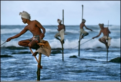 스리랑카 인솔을 맡고 자료조사를 하다가 아주 인상적인 사진을 하나 봤는데 바로 스틸트 피싱(Stilt Fishing)이었다. 흔히 ‘외다리 낚시’라고 불리는 스틸트 피싱은 여행가이드 북 ‘론리 플래닛 스리랑카 편’의 표지를 장식하는 등 스리랑카를 대표하는 이미지로 널리 알려져 있으며, 최근에는 대한항공 TV광고에도 등장했다.