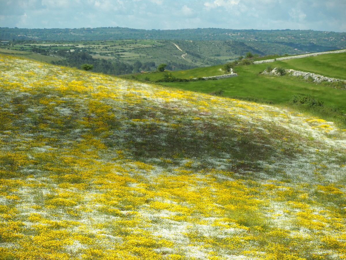 다시 전동차를 타고 온갖 꽃들이 가득한 들판을 가로질러 아크로폴리스 유적지까지 갔다.